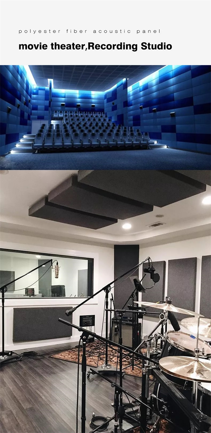 100% polyester fiber is high-tech hot pressed and made in the shape of cocoon cotton. The product has the characteristics of decoration, heat preservation, flame retardant, environmental protection, light body, easy processing, stability, impact resistance, and easy maintenance. Become the preferred sound-absorbing material for interior decoration.