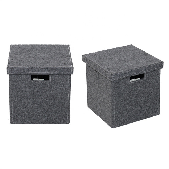 Soft Felt Closet Organizer , collapsible square storage bin Front PU leather Handle with Lid - Storage for Closet