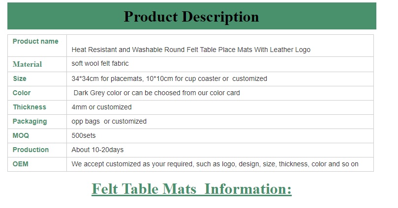 * PROTECTIVE & PLEASANT: Felt Placemats are heat-resistant, quick-drying, non-slip and lightweigh. Protect your table fromscratches, streaks or stains. Ideal accessory for kitchen, living room, dining table in your daily life.